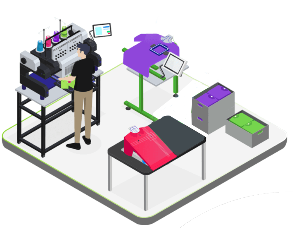A final check to ensure high-quality production has occurred and to prevent errors from happening. A quick scan of the QR code tells the operator what to look for on the garment. The color, size, style, of the blank are shown along with the print location and artwork. If the item is part of a larger order, or needs additional print locations applied, the system tells the operator what to do next.